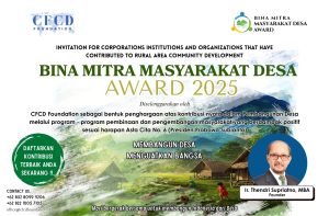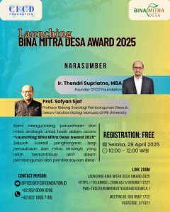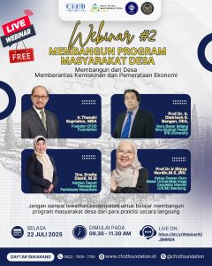 CFCD Foundation bersama Program Bina Mitra Masyarakat Desa Award 2025 mempersembahkan: Webinar #2: “Membangun dari Desa โ Memberantas Kemiskinan dan Pemerataan Ekonomi” ๐ Selasa, 22